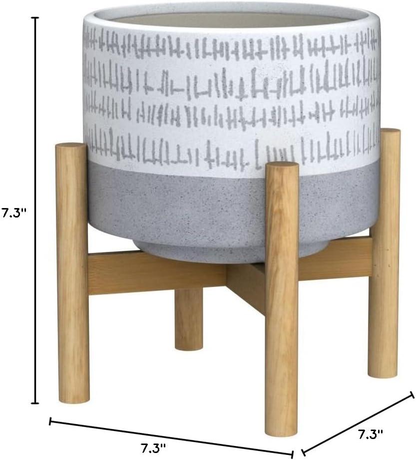 Pragmatic Planter – Drain hole is equipped so excess water would not be a concern. Your lovely greenery will thrive in such spacious pot space (Plants not included). With stand- 9.3″H; Planter-7.3″H x 5.6″W.