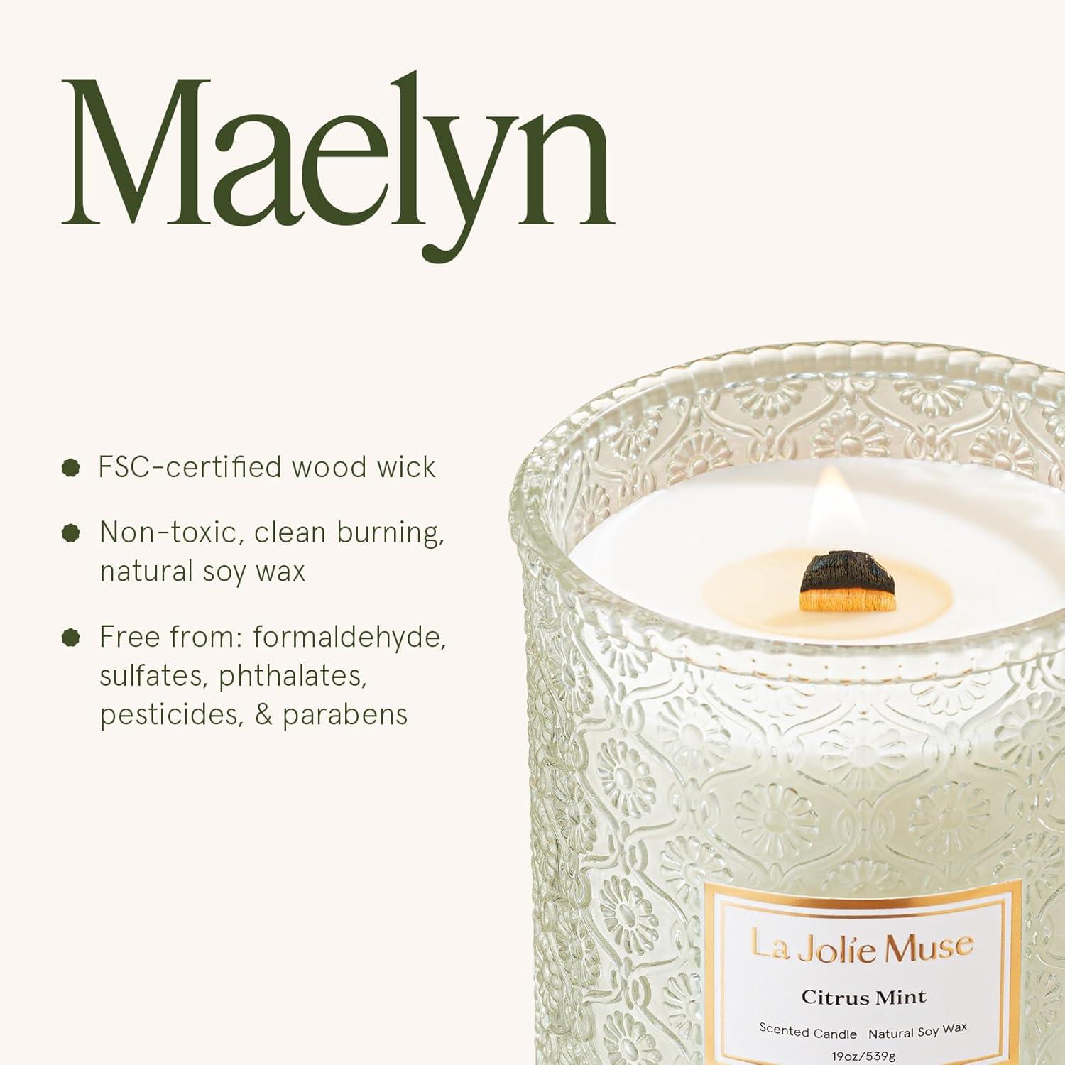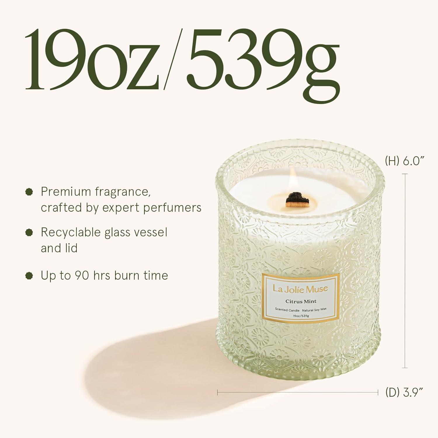 LA JOLIE MUSE Jasmin Candle, 19 oz Wood Wicked Scented Candle Gifts for Women&Men, Large Jar Candles for Home, 90 Hours Long Burning, Jasmin du Lotus(Citrus Mint)