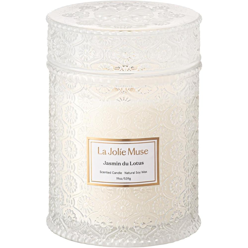 LA JOLIE MUSE Ruby Berry Bliss Scented Candle – Mandarin, Cranberry & Plum | 19 oz Festive Fall Candle | Wooden Wick | Clean Burn & Vibrant Scent | Fun Gift for Hosts & Fall Tablescapes(Jasmin du Lotus)