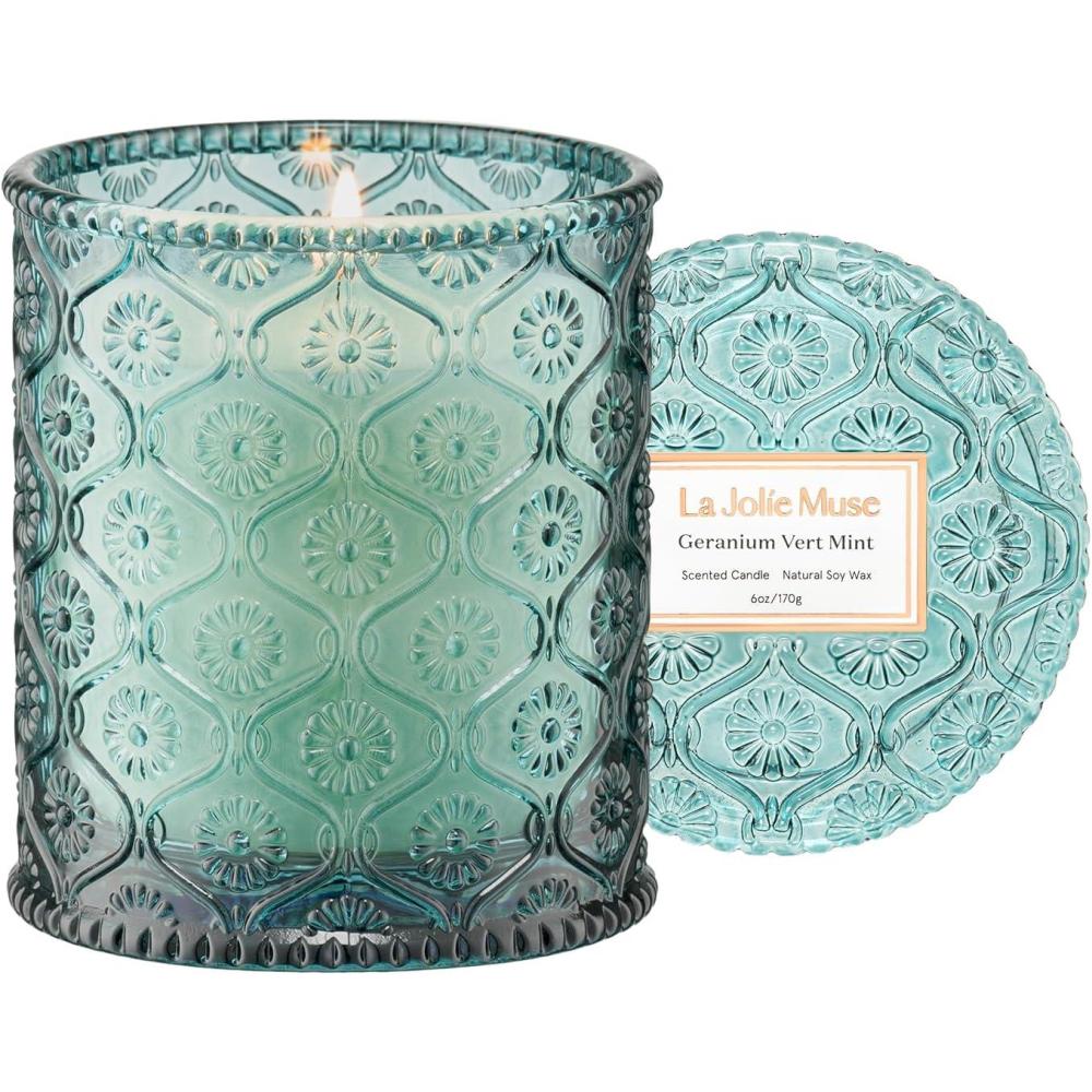 LA JOLIE MUSE Ruby Berry Bliss Scented Candle – Mandarin, Cranberry & Plum | 6 oz Festive Fall Candle | 40 Hours Clean Burn|Vibrant Scent| Gift for Hosts|Fall Tablescapes(Geranium Vert Mint)