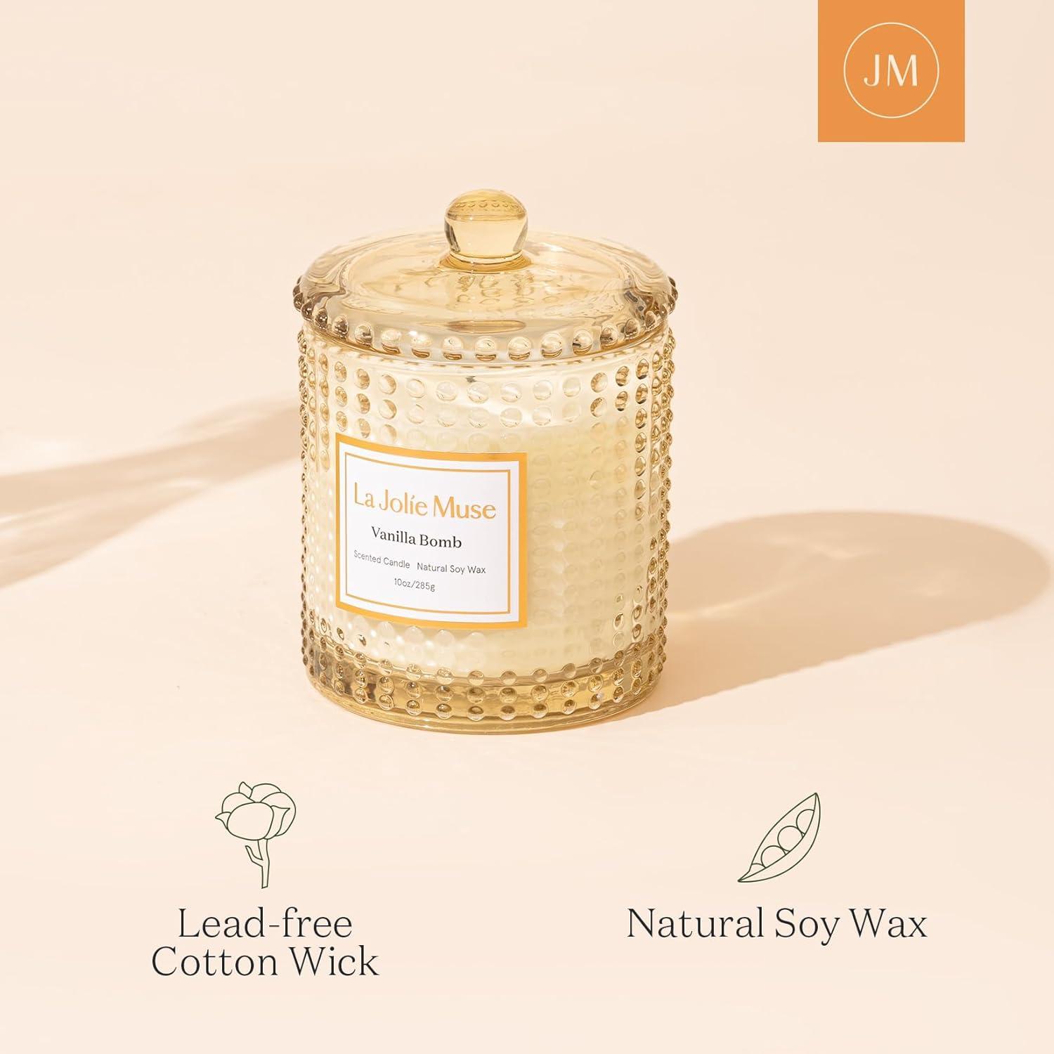 Marvella Collection: Celebrates vibrant elegance and sophisticated charm. Each high-quality glass jar, inspired by classic and contemporary aesthetics, features a distinctive hobnail pattern that creates a dynamic interplay of light and shadow when lit.