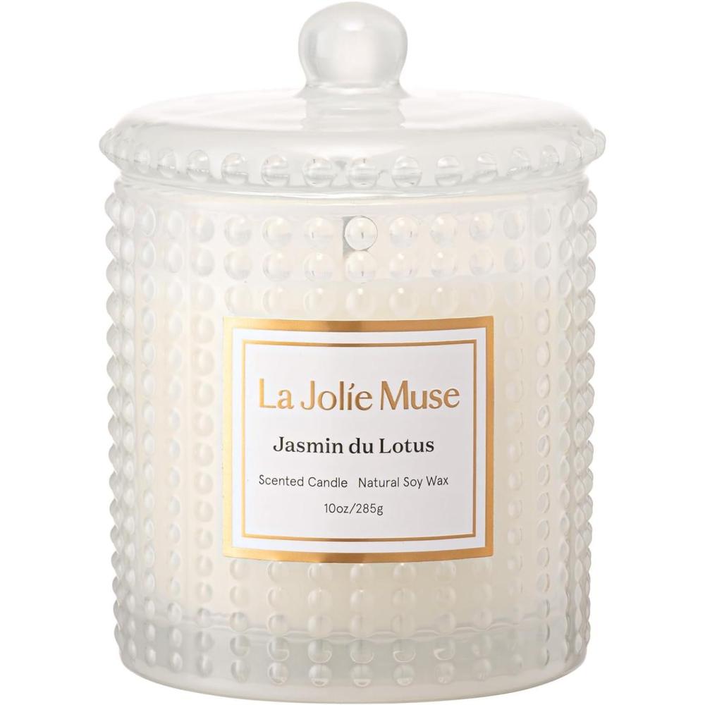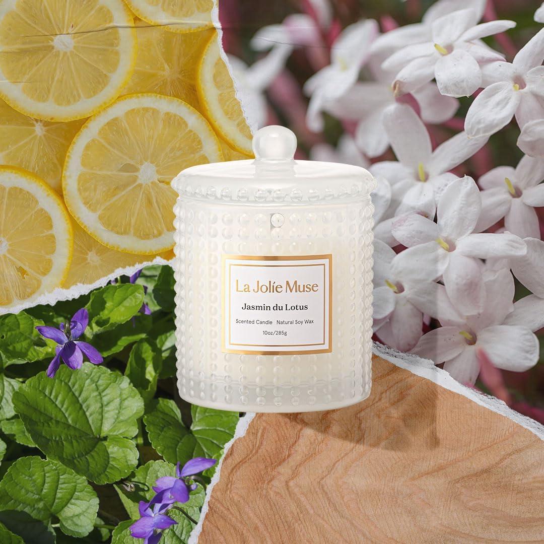 LA JOLIE MUSE Ruby Berry Bliss Scented Candle – Mandarin, Cranberry & Plum| Natural Soy Wax | 10 oz Festive Christmas Candle | 55 Hours Clean Burn | Autumn House Warming Gift | Seasonal Home Décor(Jasmin du Lotus)