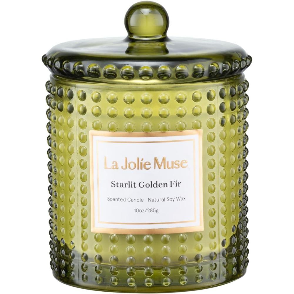 LA JOLIE MUSE Ruby Berry Bliss Scented Candle – Mandarin, Cranberry & Plum| Natural Soy Wax | 10 oz Festive Christmas Candle | 55 Hours Clean Burn | Autumn House Warming Gift | Seasonal Home Décor(Starlit Golden Fir)